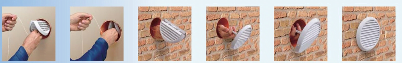 A szellőztető rácsot belsejéből szerelhetjük fel olyan területeken, ahol kívülről való hozzáférés nem lehetséges.